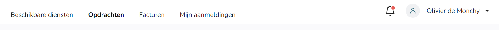 Om de huidige openstaande opdrachten te kunnen zien moet je ingelogd zijn als zorgverlener. Klik daarna in de menubalk op 'Opdrachten' (zie onder).