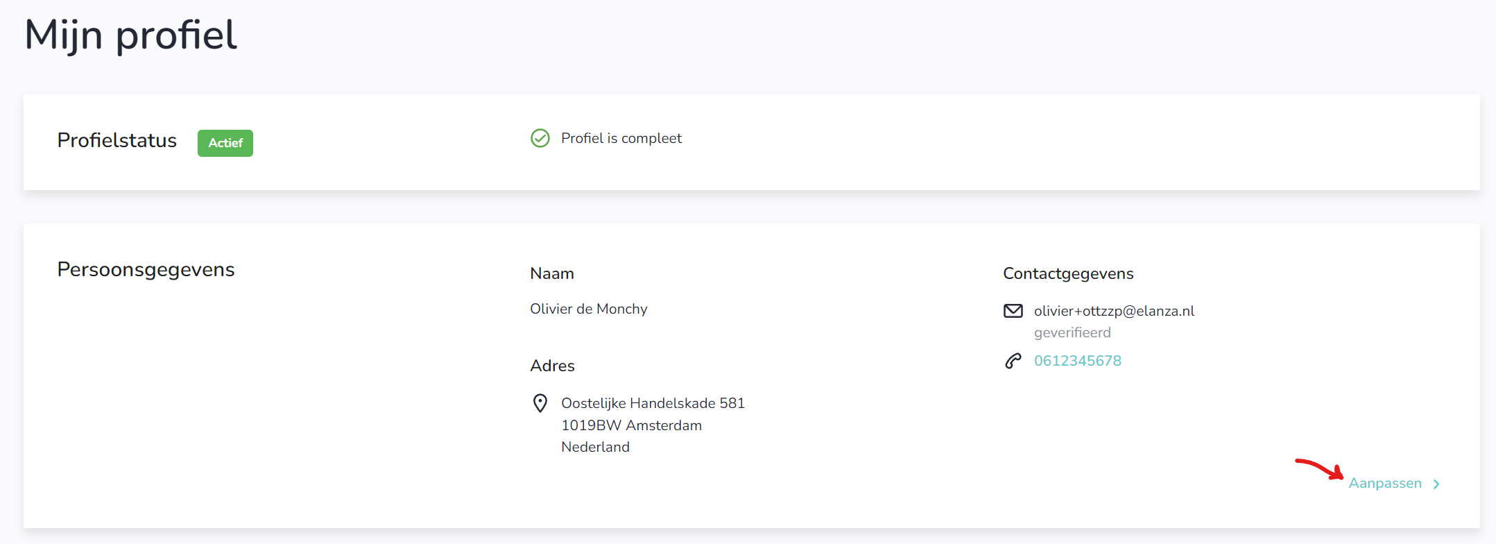 Dit doe je via je profielpagina op het platform. Hieronder zie je een voorbeeld: